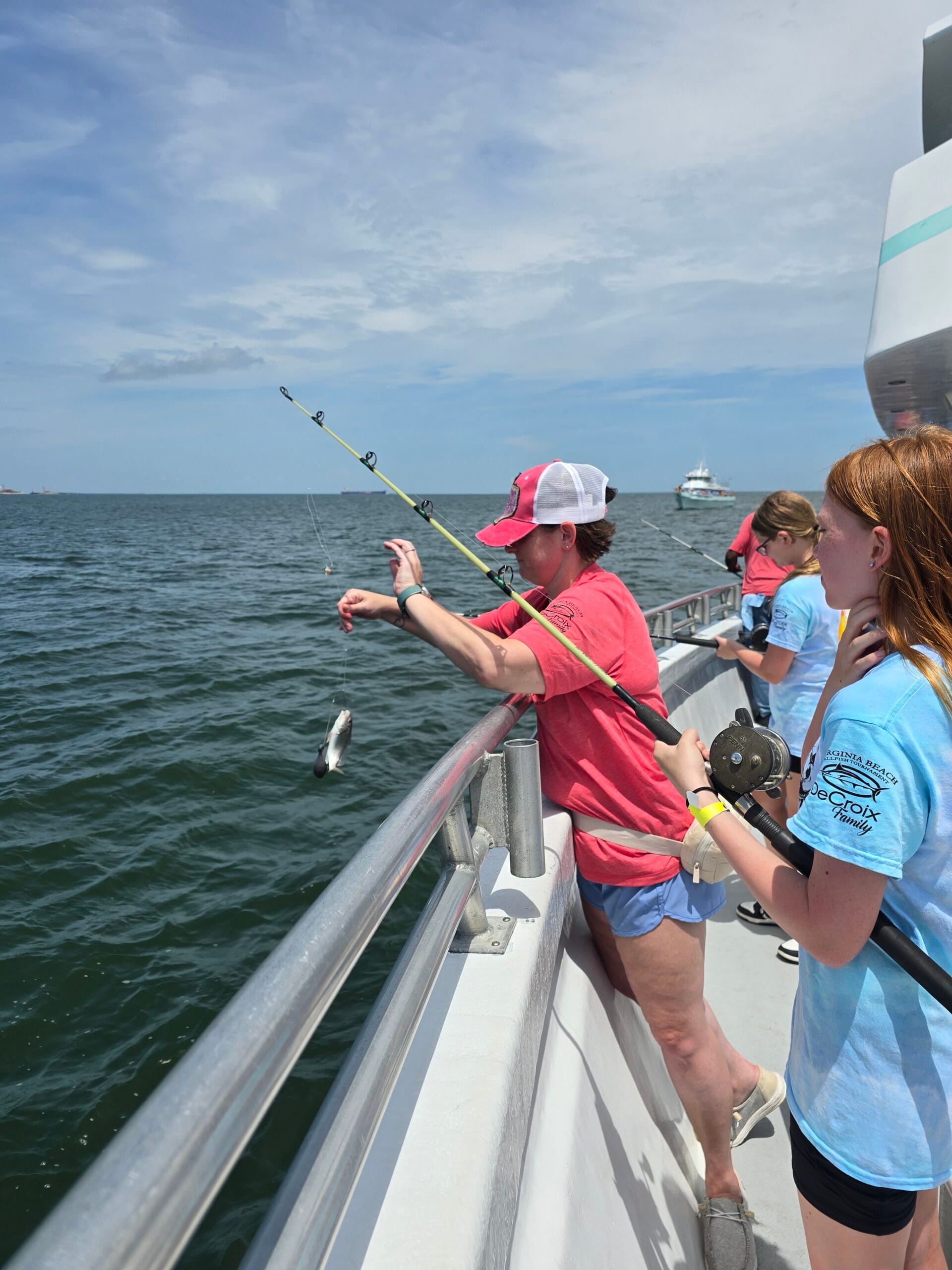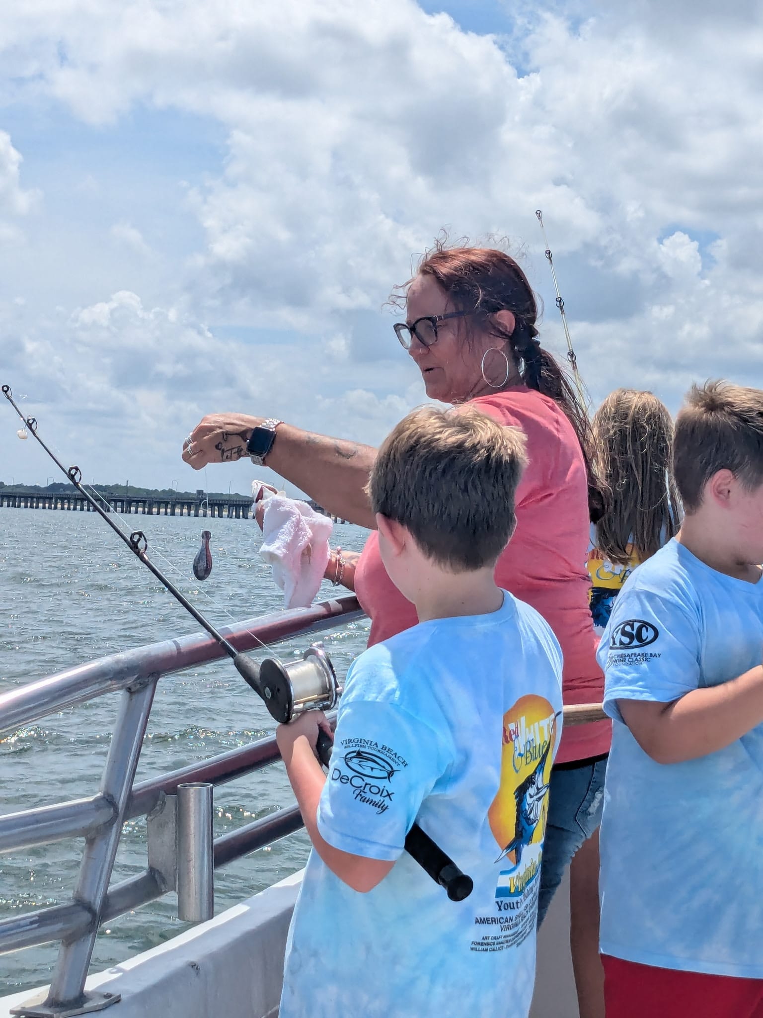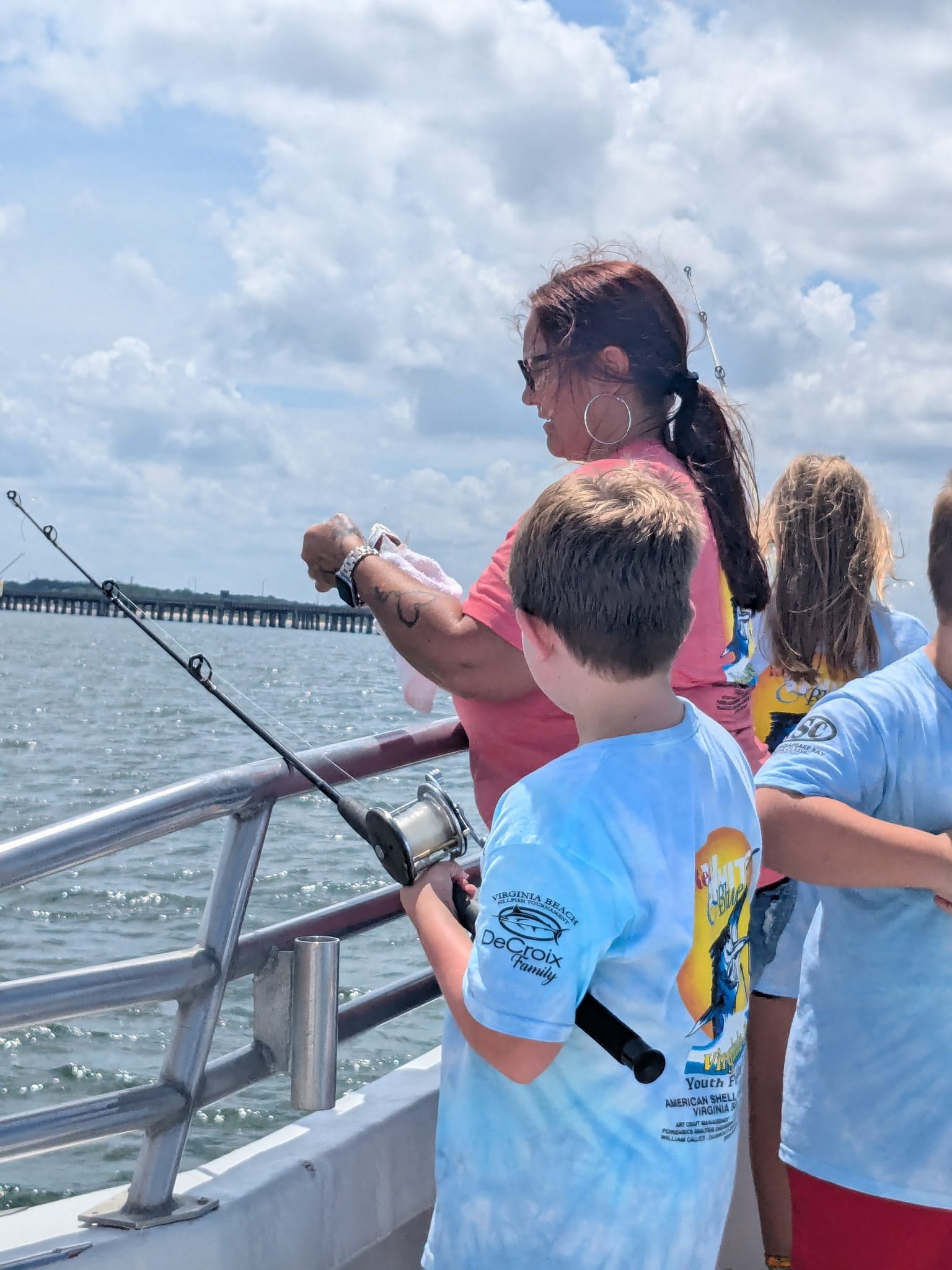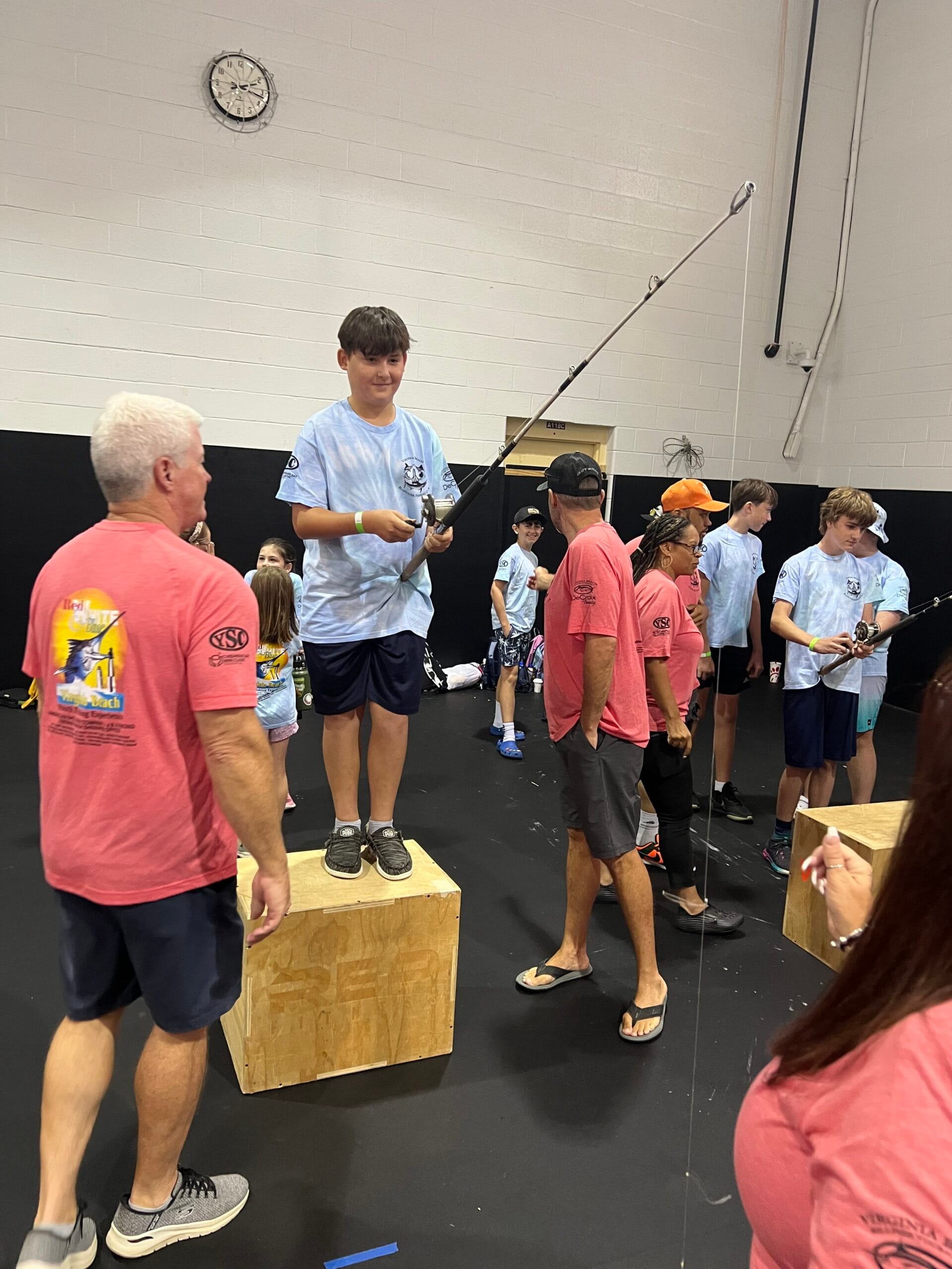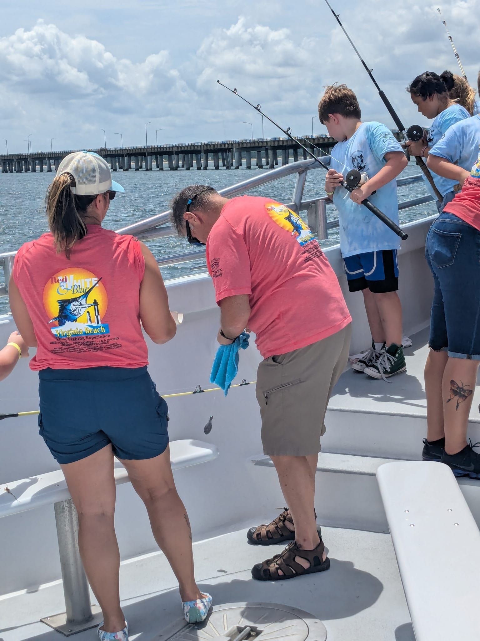 Mac, the VP of the Virginia Beach Bluewater Fishing Club (VBBFC), starts planning for the NEXT year’s VBBF HOF-NOD Summer Youth Events in June. There is a lot that goes into coordinating 2 fishing events that benefit 300+ local youth each year! This includes securing the LETA location, boats, transportation, lunch/dinner/snacks/beverages, recruiting volunteers, shirts, trophies, collaboration with school guidance counselors…etc! Meanwhile, Judy and Frank work diligently with their contacts to solicit the tremendous amount of donations required to fund these 2 events. Behind the scenes, the VBBFC board members also do their best to support the VBBFC and VBBF HOF-NOD through member events and planning of the Annual Oyster Roast for additional funds to support the youth events. It is all a team effort with volunteers trying to make it a fun and rewarding experience for all.