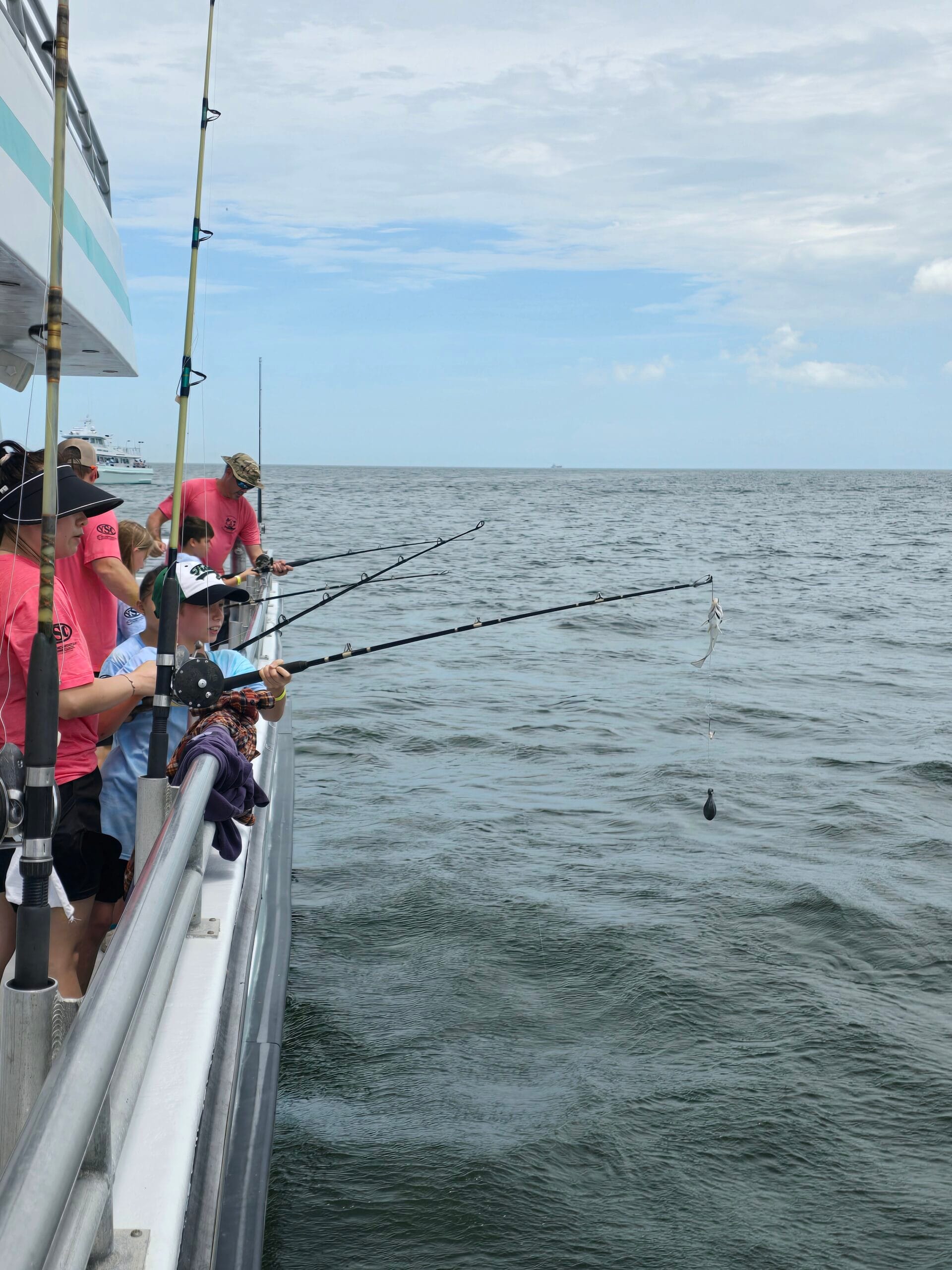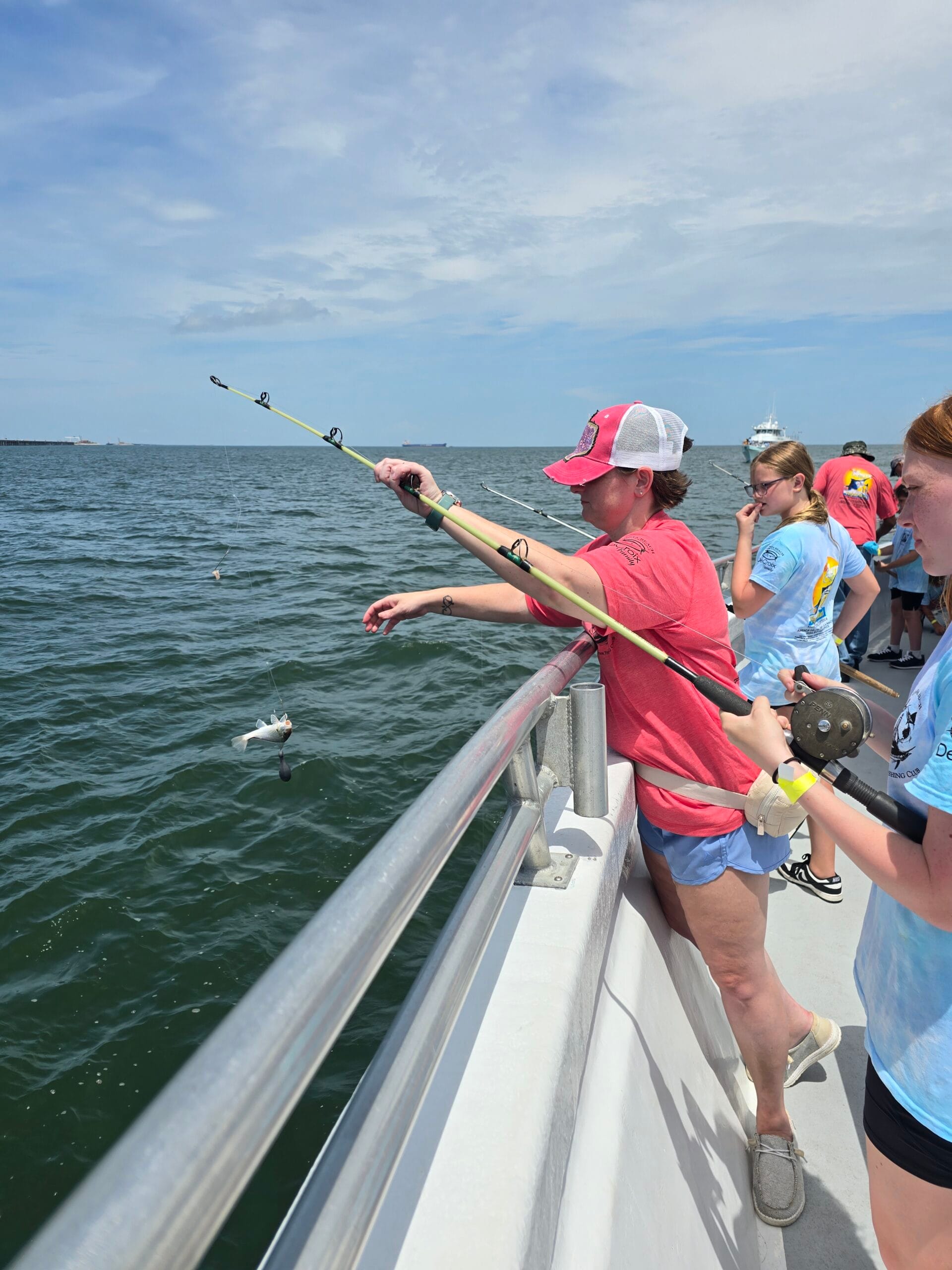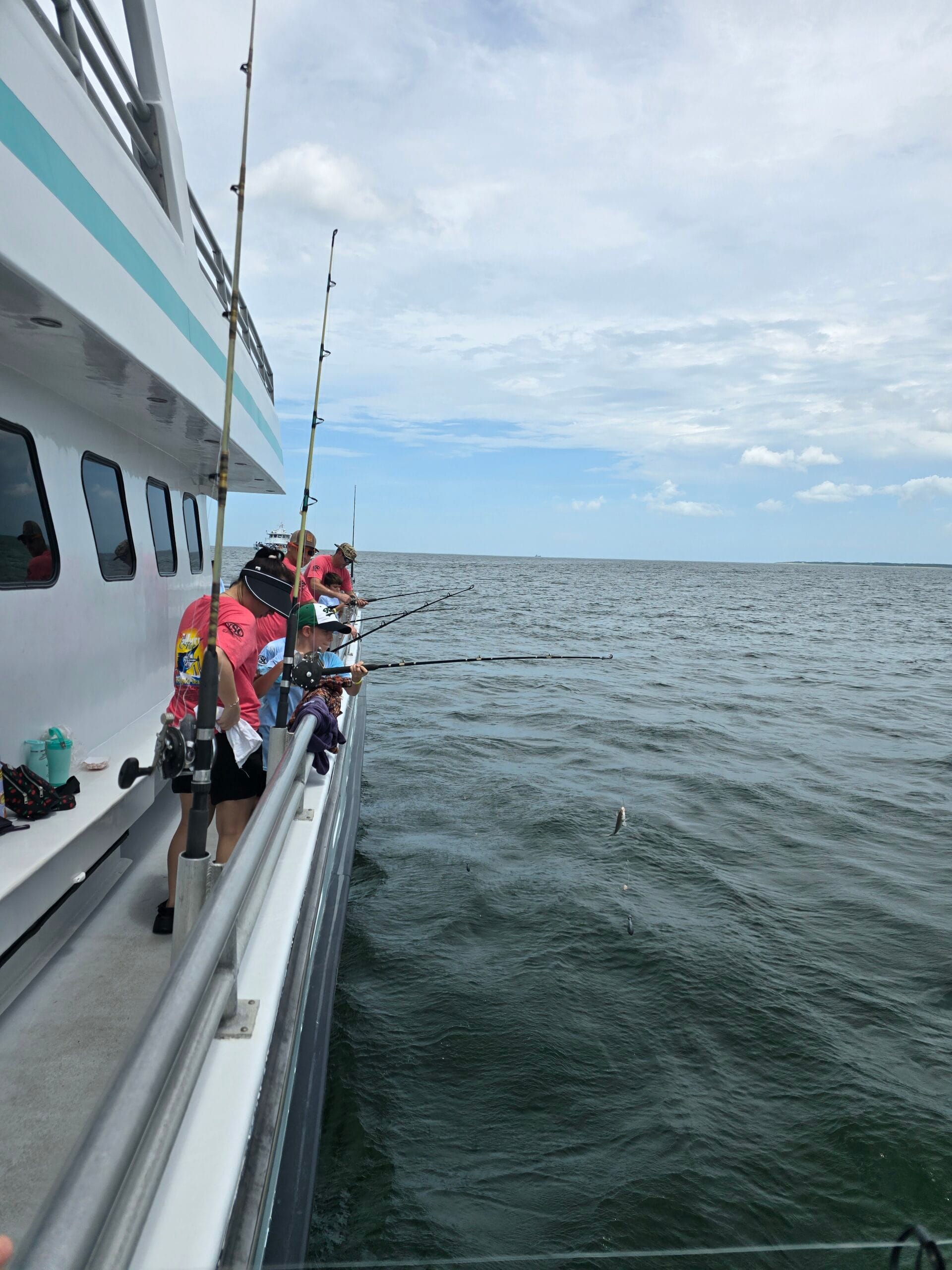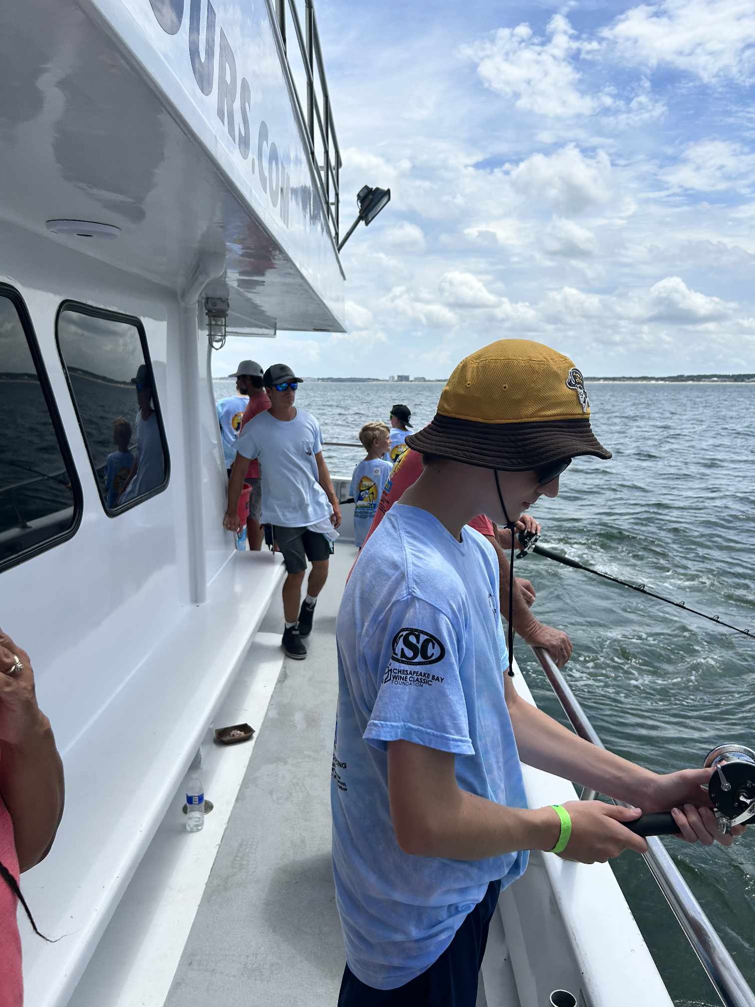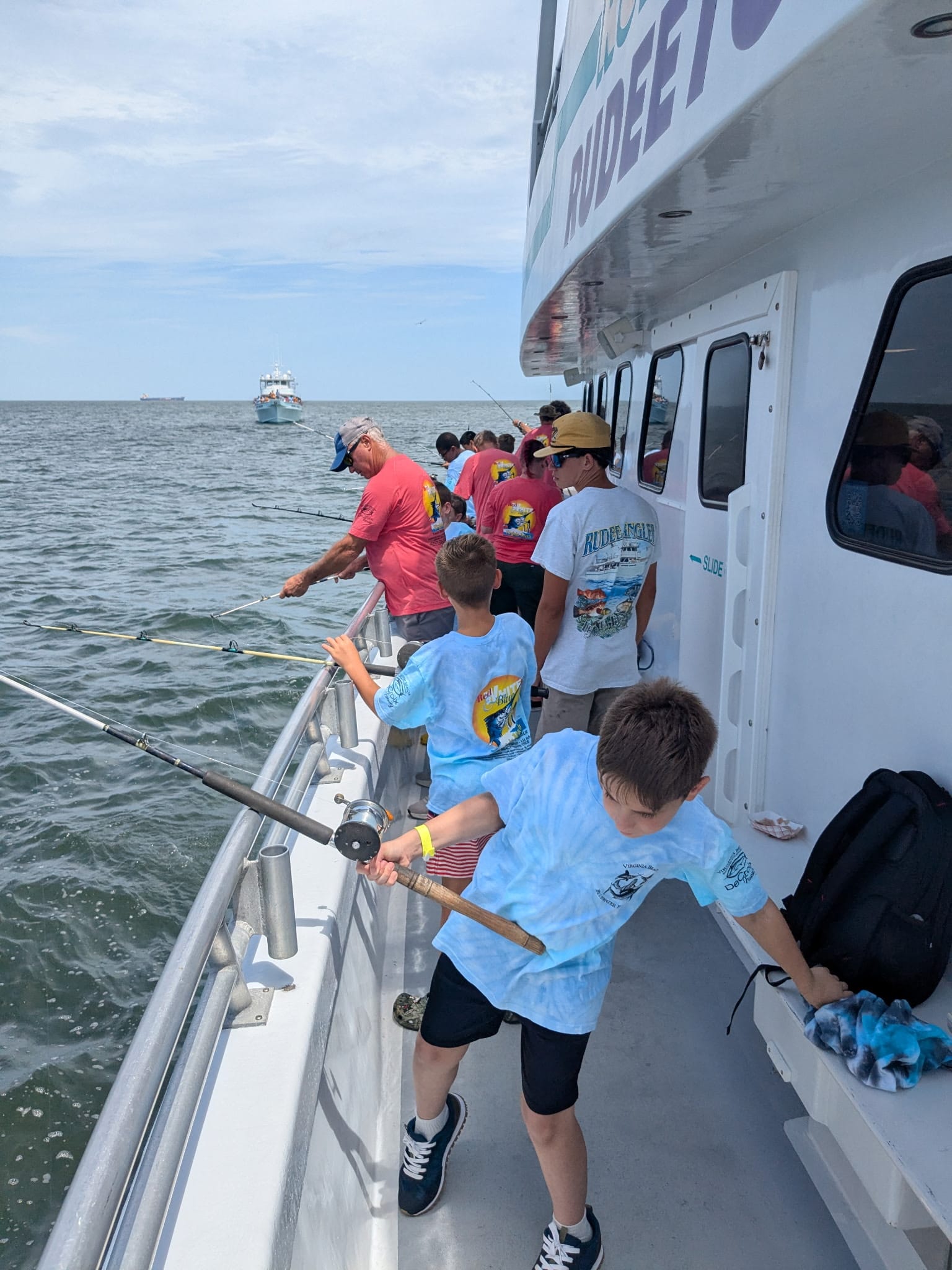 Mac, the VP of the Virginia Beach Bluewater Fishing Club (VBBFC), starts planning for the NEXT year’s VBBF HOF-NOD Summer Youth Events in June. There is a lot that goes into coordinating 2 fishing events that benefit 300+ local youth each year! This includes securing the LETA location, boats, transportation, lunch/dinner/snacks/beverages, recruiting volunteers, shirts, trophies, collaboration with school guidance counselors…etc! Meanwhile, Judy and Frank work diligently with their contacts to solicit the tremendous amount of donations required to fund these 2 events. Behind the scenes, the VBBFC board members also do their best to support the VBBFC and VBBF HOF-NOD through member events and planning of the Annual Oyster Roast for additional funds to support the youth events. It is all a team effort with volunteers trying to make it a fun and rewarding experience for all.