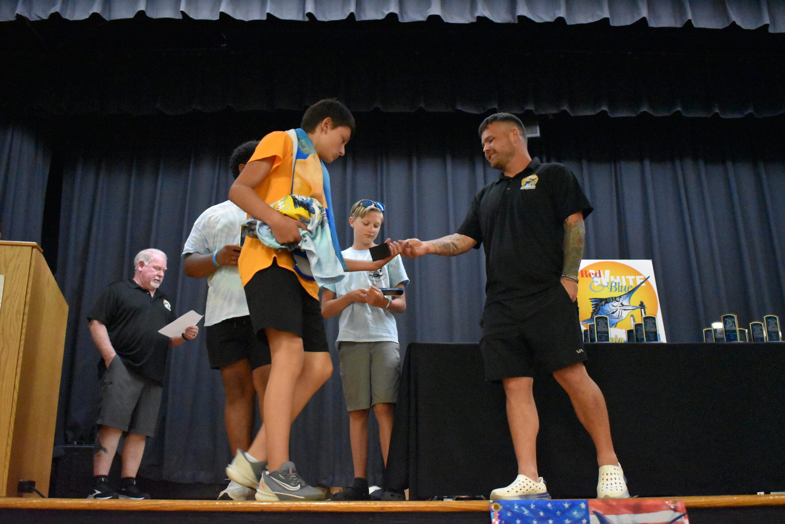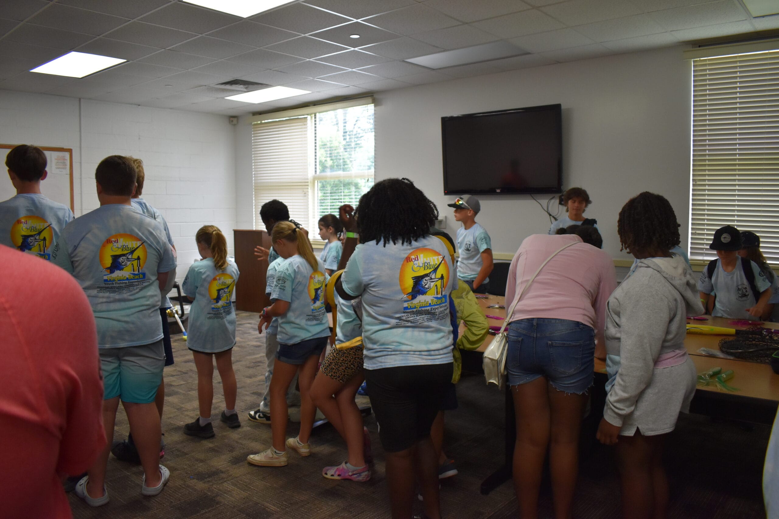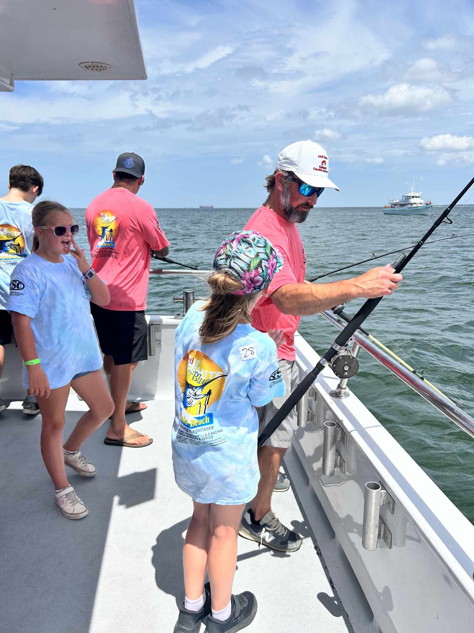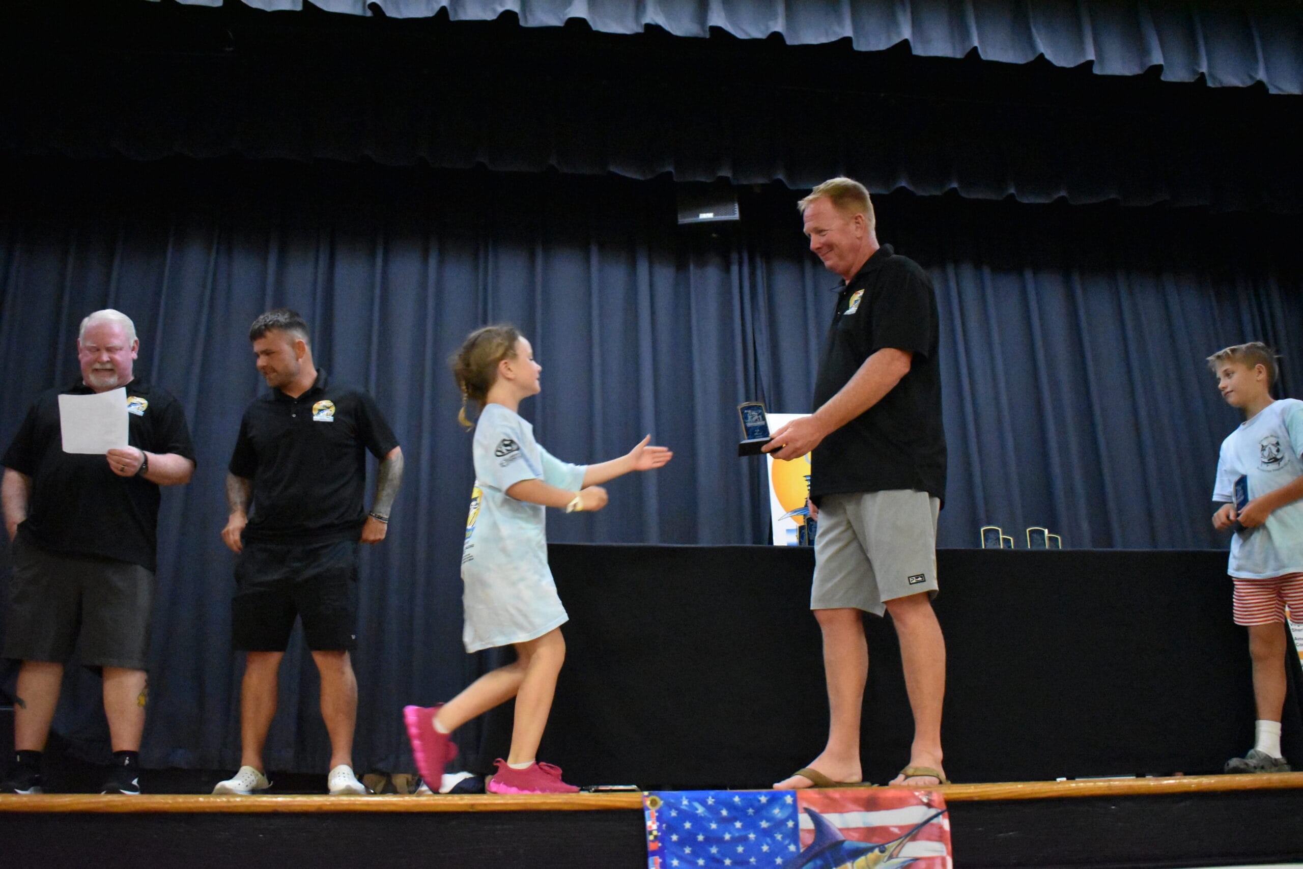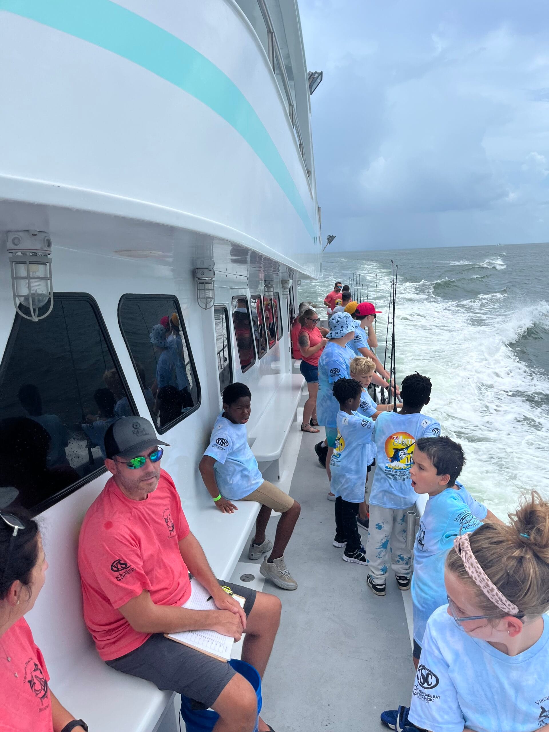On the day of the events, the numerous volunteers are excited to welcome the kids with wrist bands and custom event shirts as their parents drop them off for the full day. Their morning consists of FUN educational presentations and multiple hands-on workshops focusing on safety, marine preservation, identification, basic fishing skills, knot-tying, etc. After enjoying their lunch, the children and volunteers are transported to 1 of the 3 Head Boats where the captain and mates are eagerly awaiting to depart to their fishing spots! The kids spend the rest of the afternoon fishing (and smiling) before returning to LETA for a meal of burgers and hot dogs. It all ends with an awards ceremony for various categories before departure.