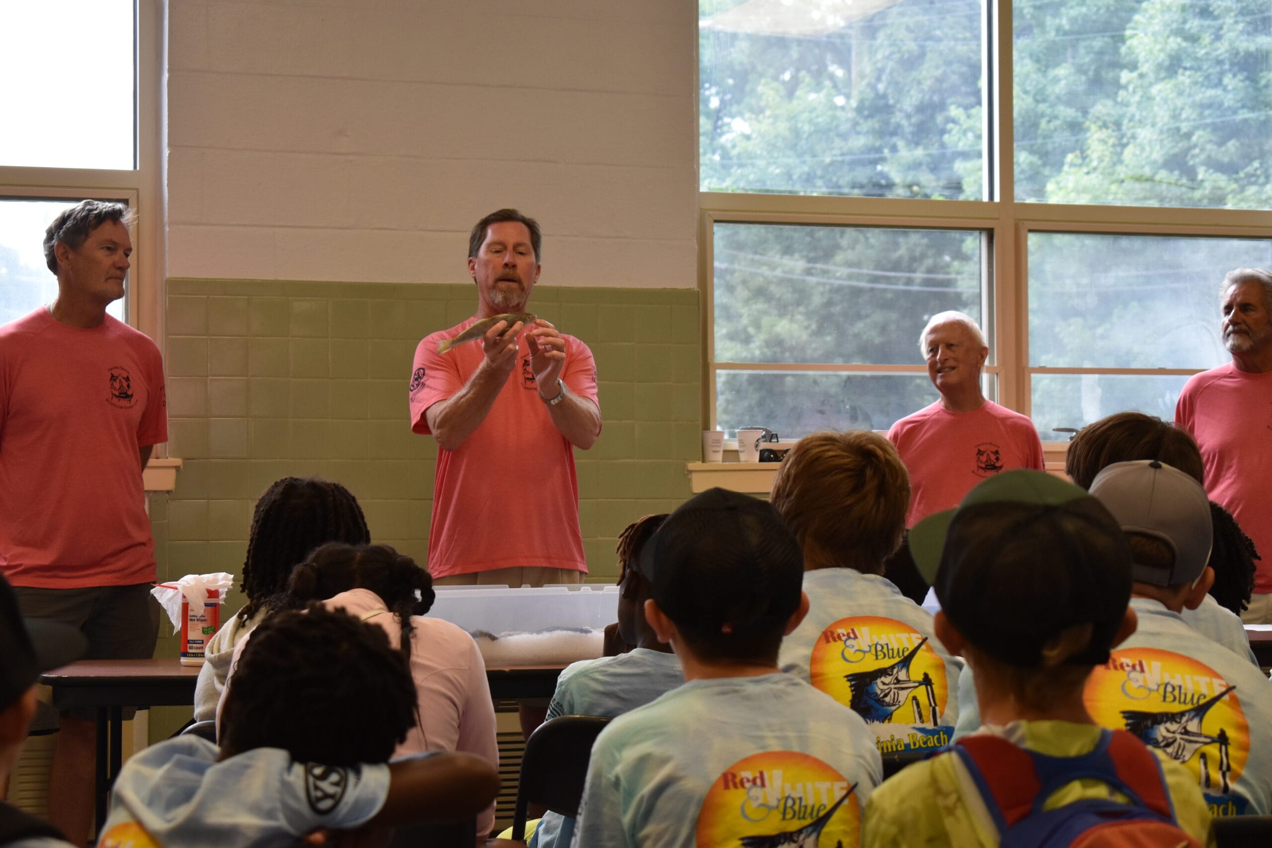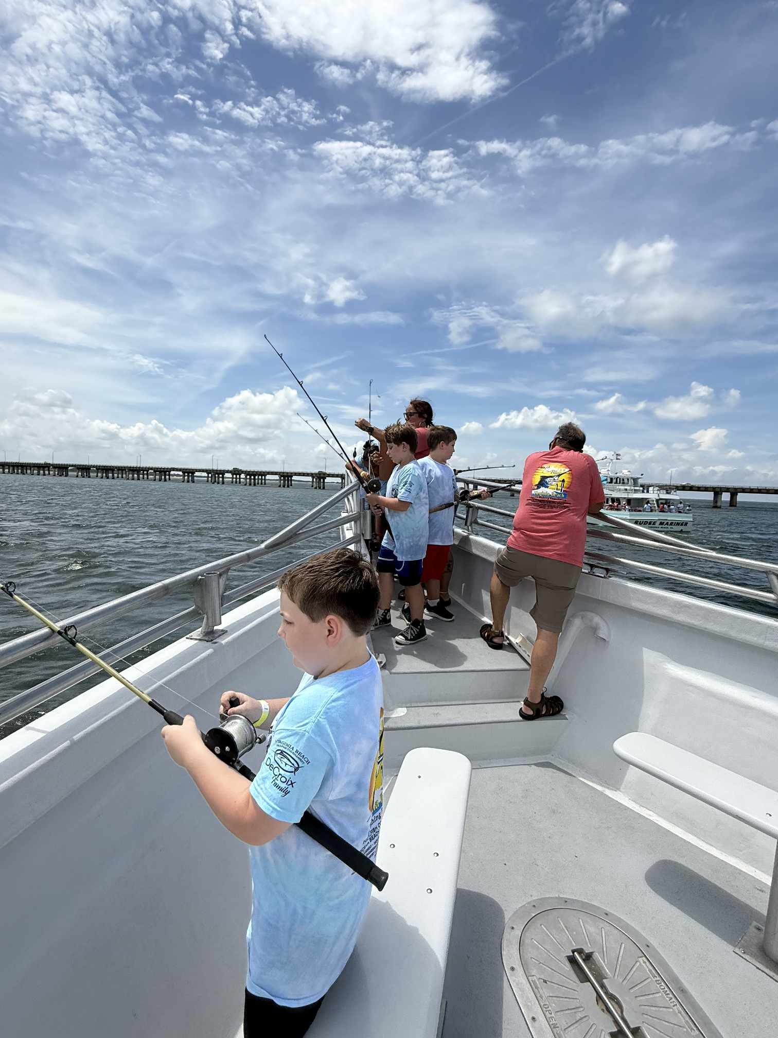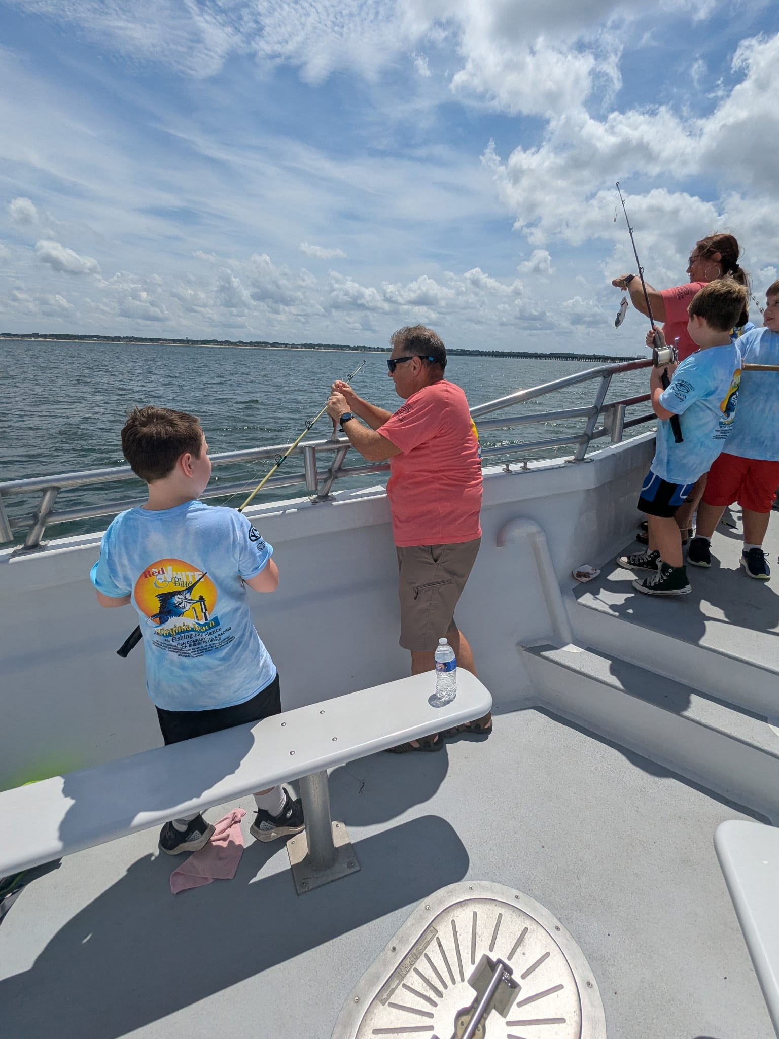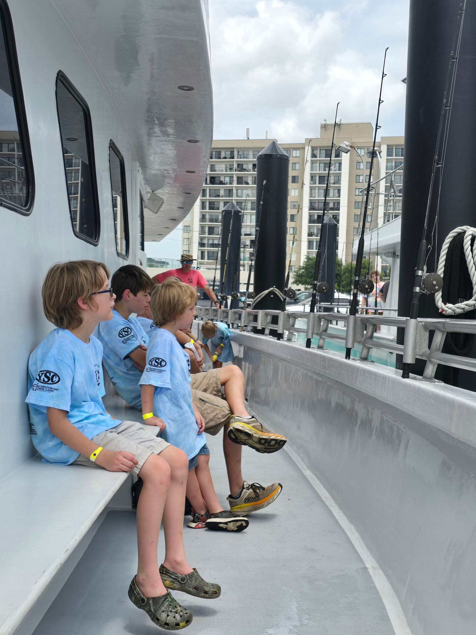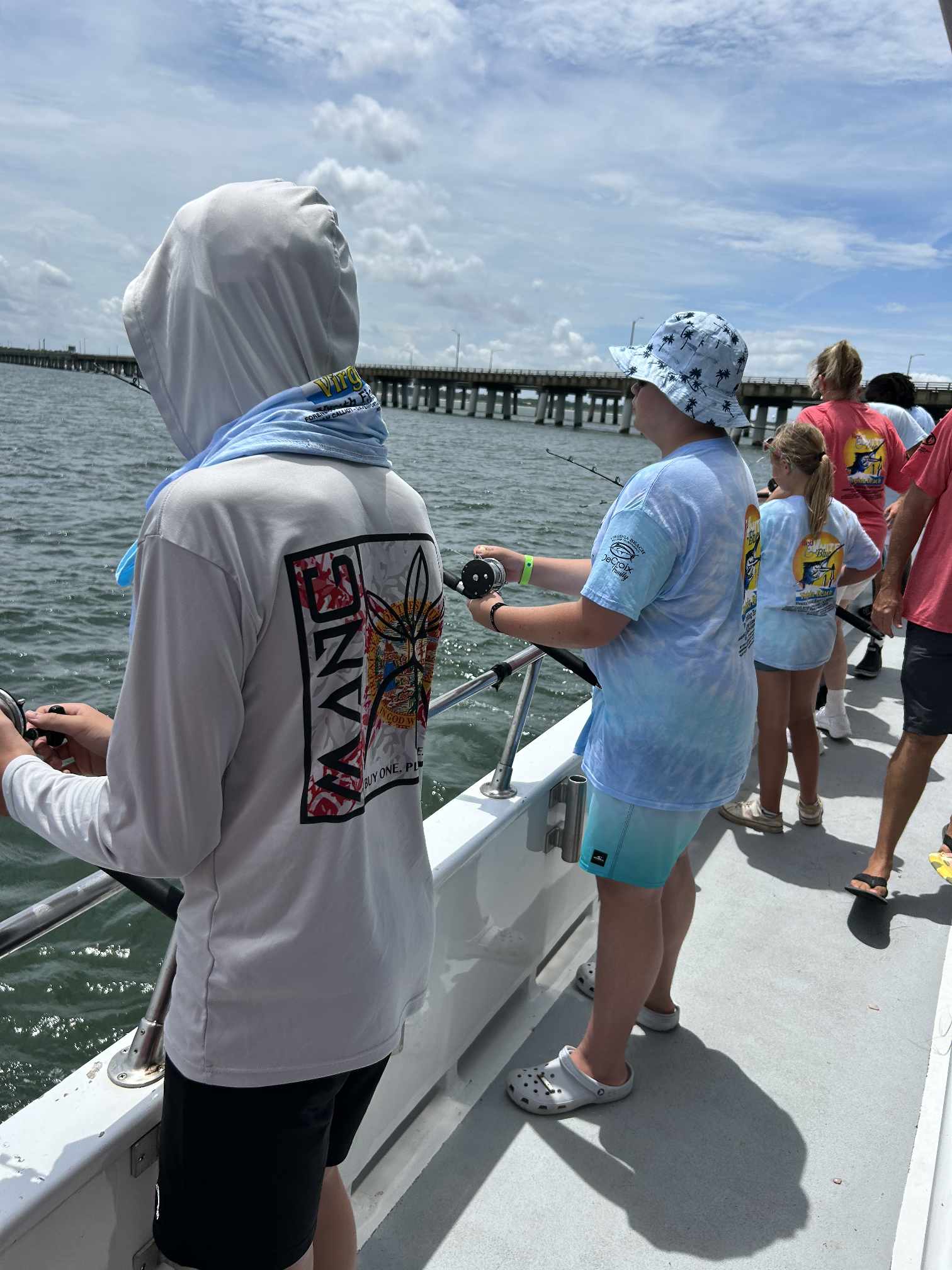 On the day of the events, the numerous volunteers are excited to welcome the kids with wrist bands and custom event shirts as their parents drop them off for the full day. Their morning consists of FUN educational presentations and multiple hands-on workshops focusing on safety, marine preservation, identification, basic fishing skills, knot-tying, etc. After enjoying their lunch, the children and volunteers are transported to 1 of the 3 Head Boats where the captain and mates are eagerly awaiting to depart to their fishing spots! The kids spend the rest of the afternoon fishing (and smiling) before returning to LETA for a meal of burgers and hot dogs. It all ends with an awards ceremony for various categories before departure.