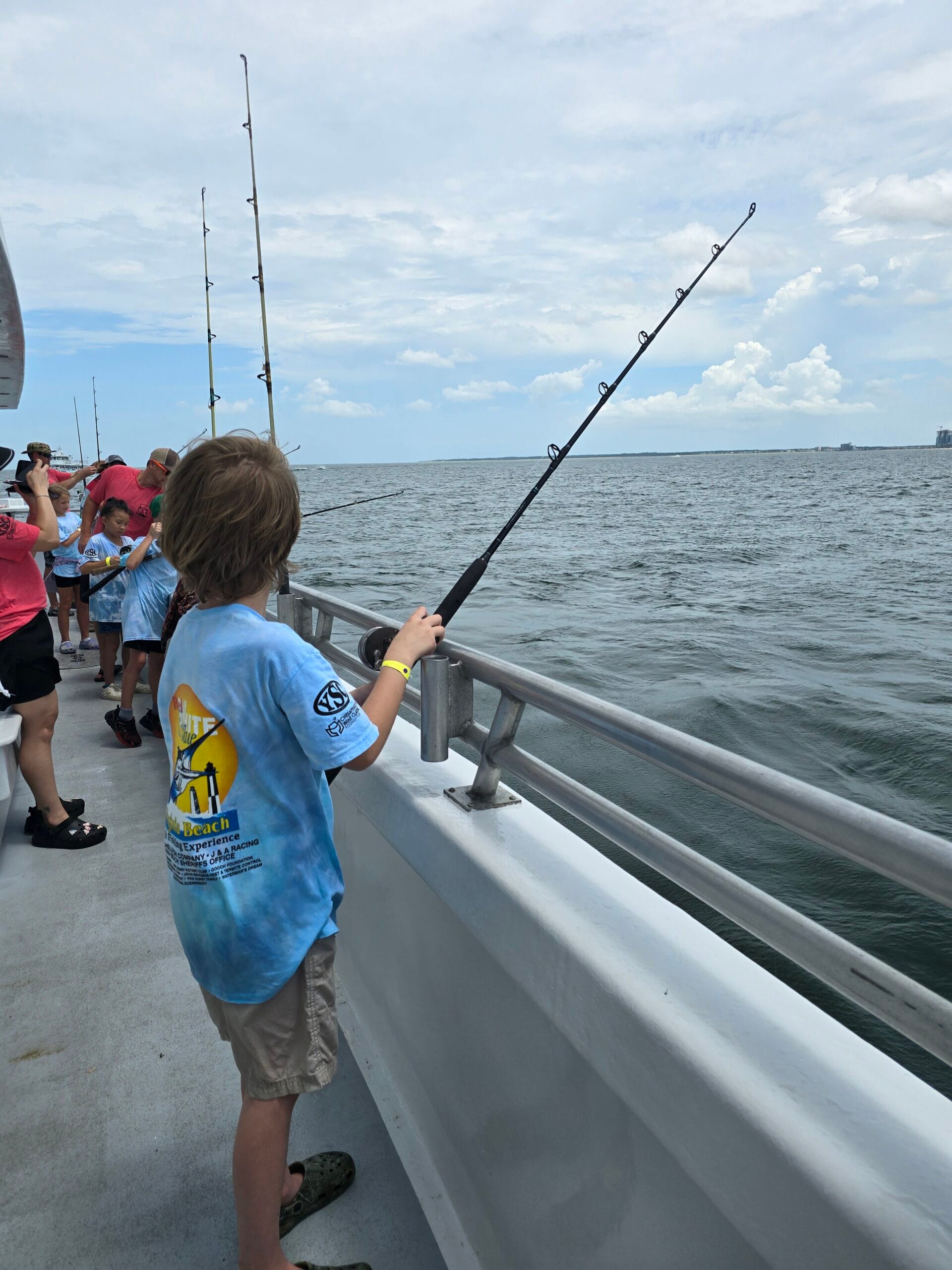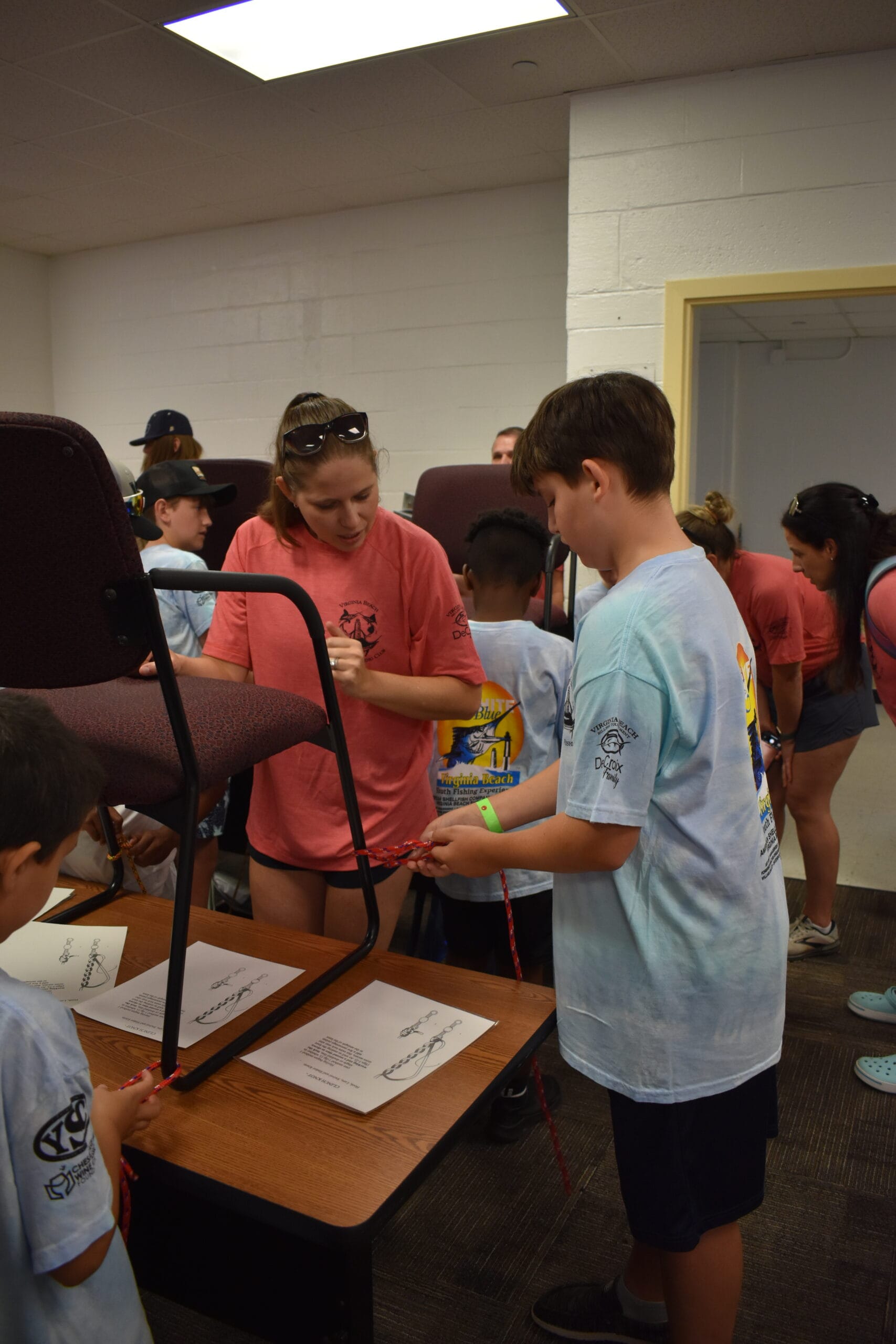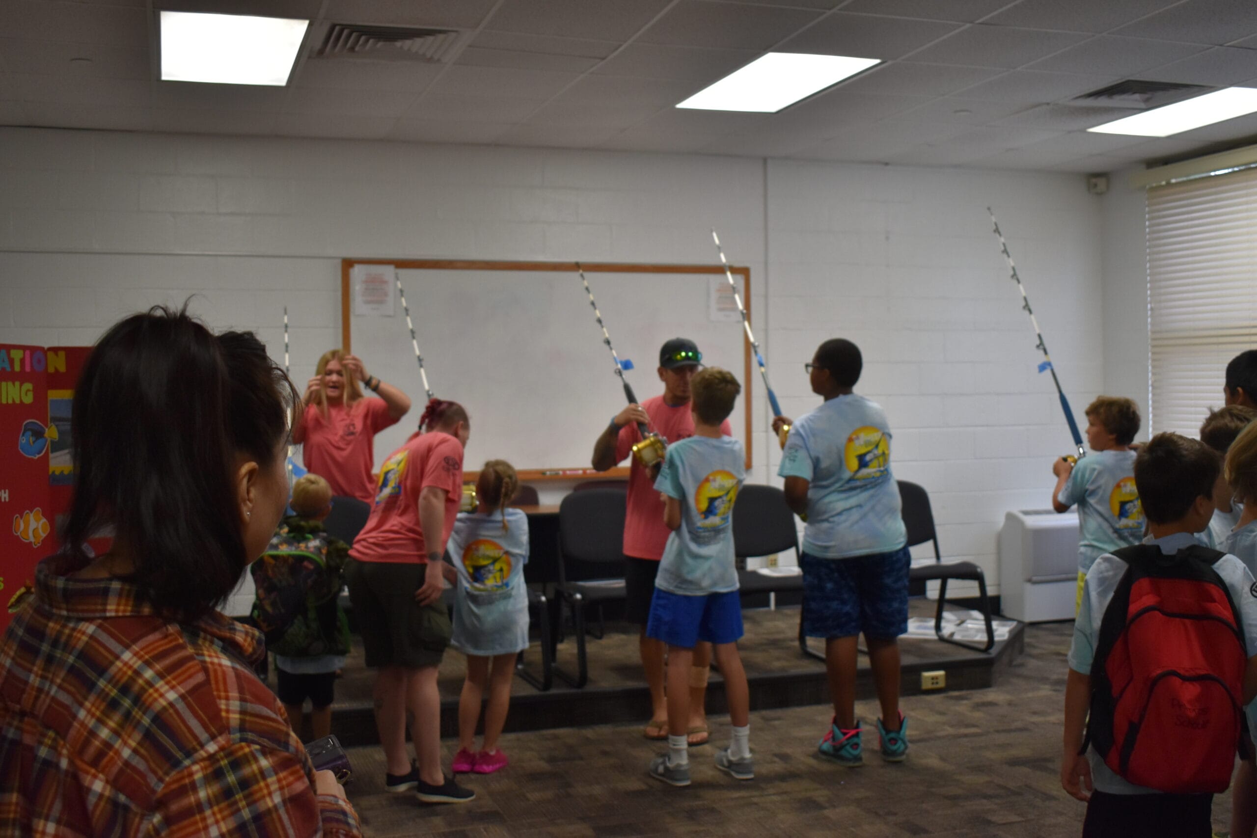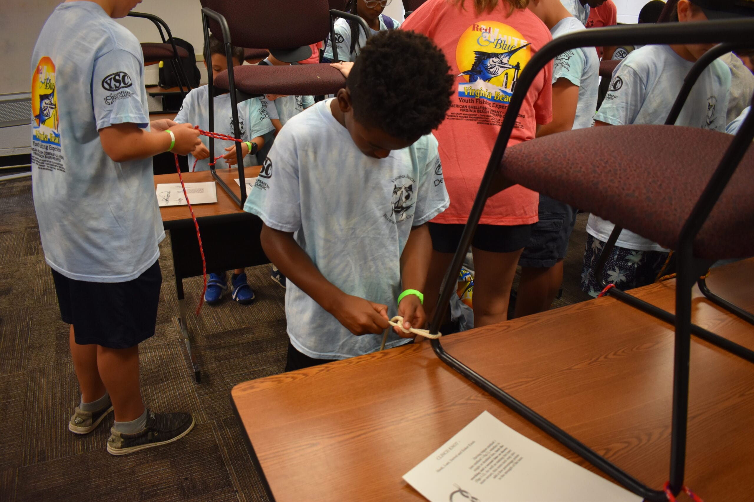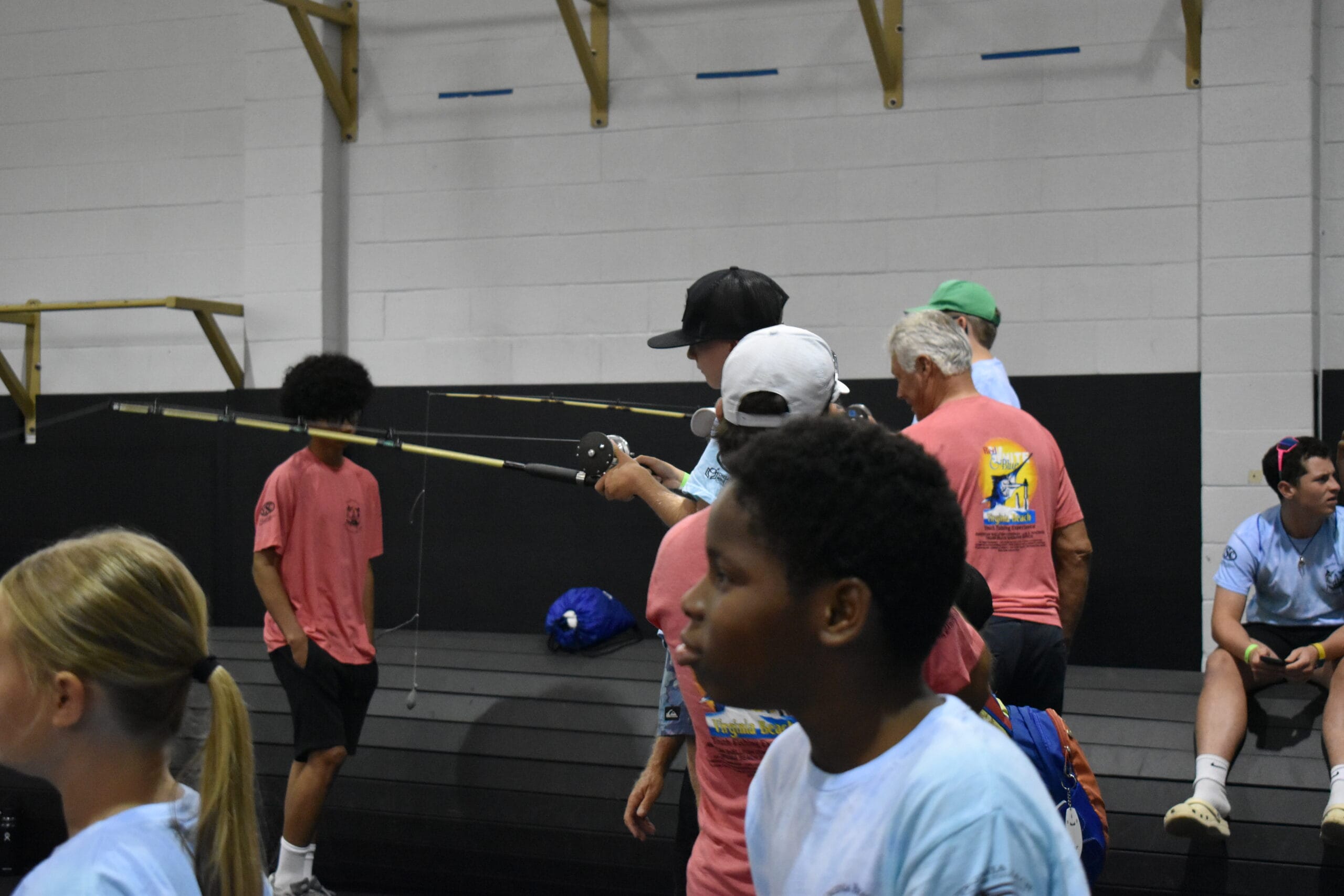 On the day of the events, the numerous volunteers are excited to welcome the kids with wrist bands and custom event shirts as their parents drop them off for the full day. Their morning consists of FUN educational presentations and multiple hands-on workshops focusing on safety, marine preservation, identification, basic fishing skills, knot-tying, etc. After enjoying their lunch, the children and volunteers are transported to 1 of the 3 Head Boats where the captain and mates are eagerly awaiting to depart to their fishing spots! The kids spend the rest of the afternoon fishing (and smiling) before returning to LETA for a meal of burgers and hot dogs. It all ends with an awards ceremony for various categories before departure.