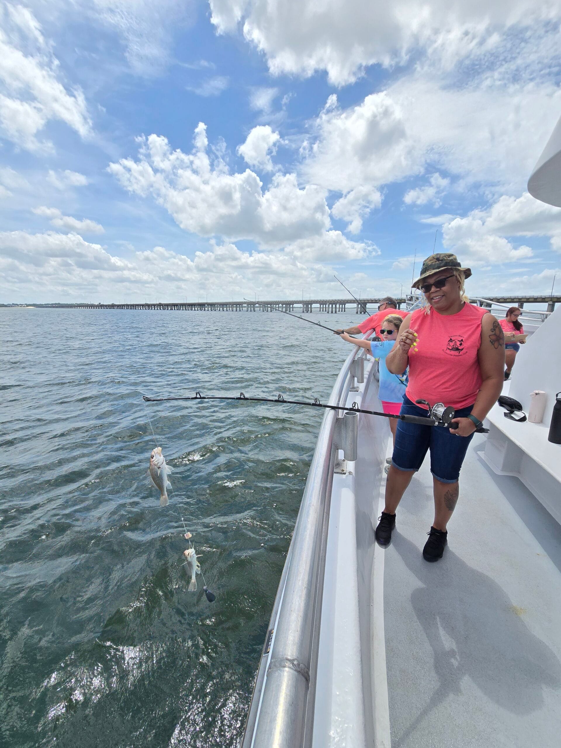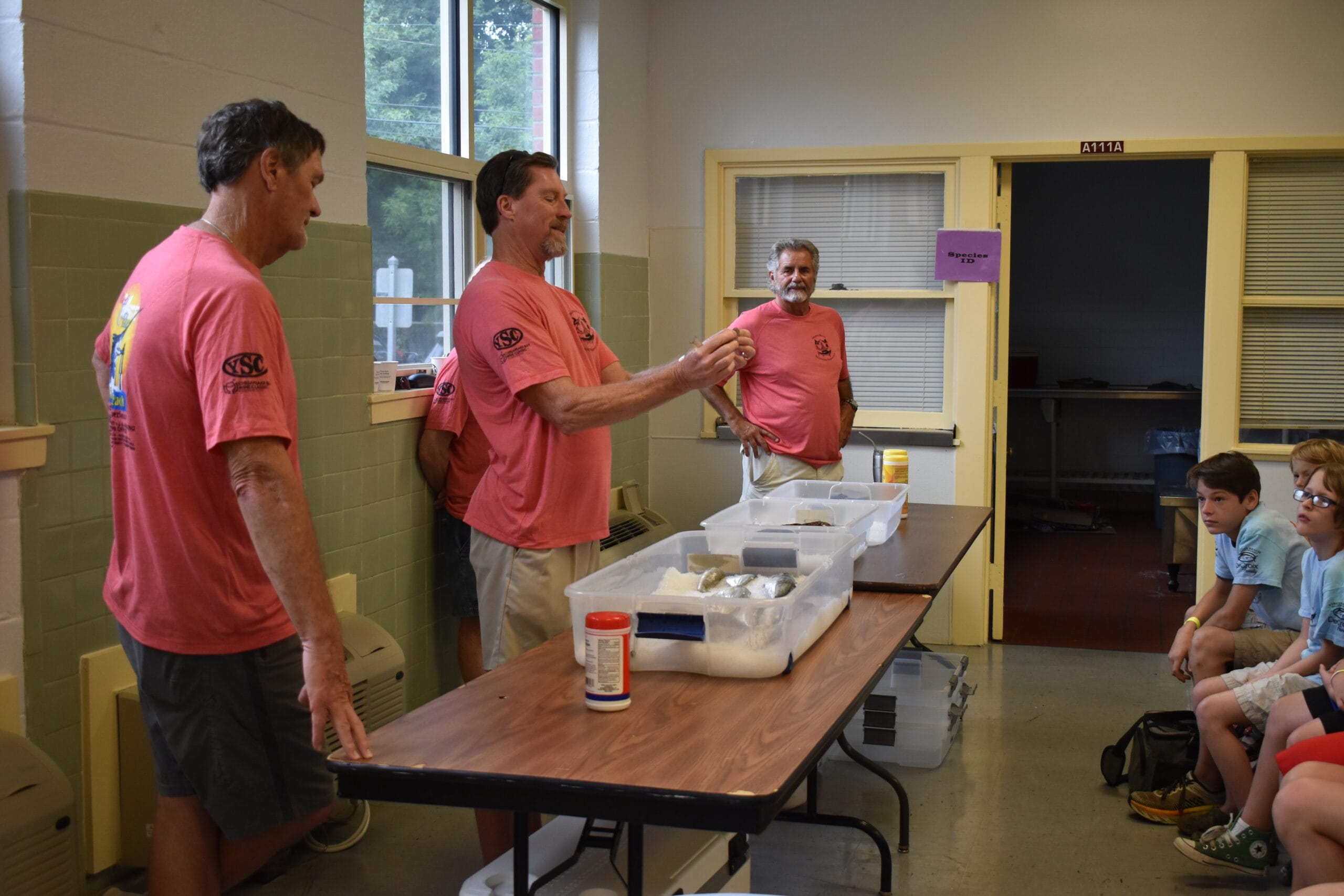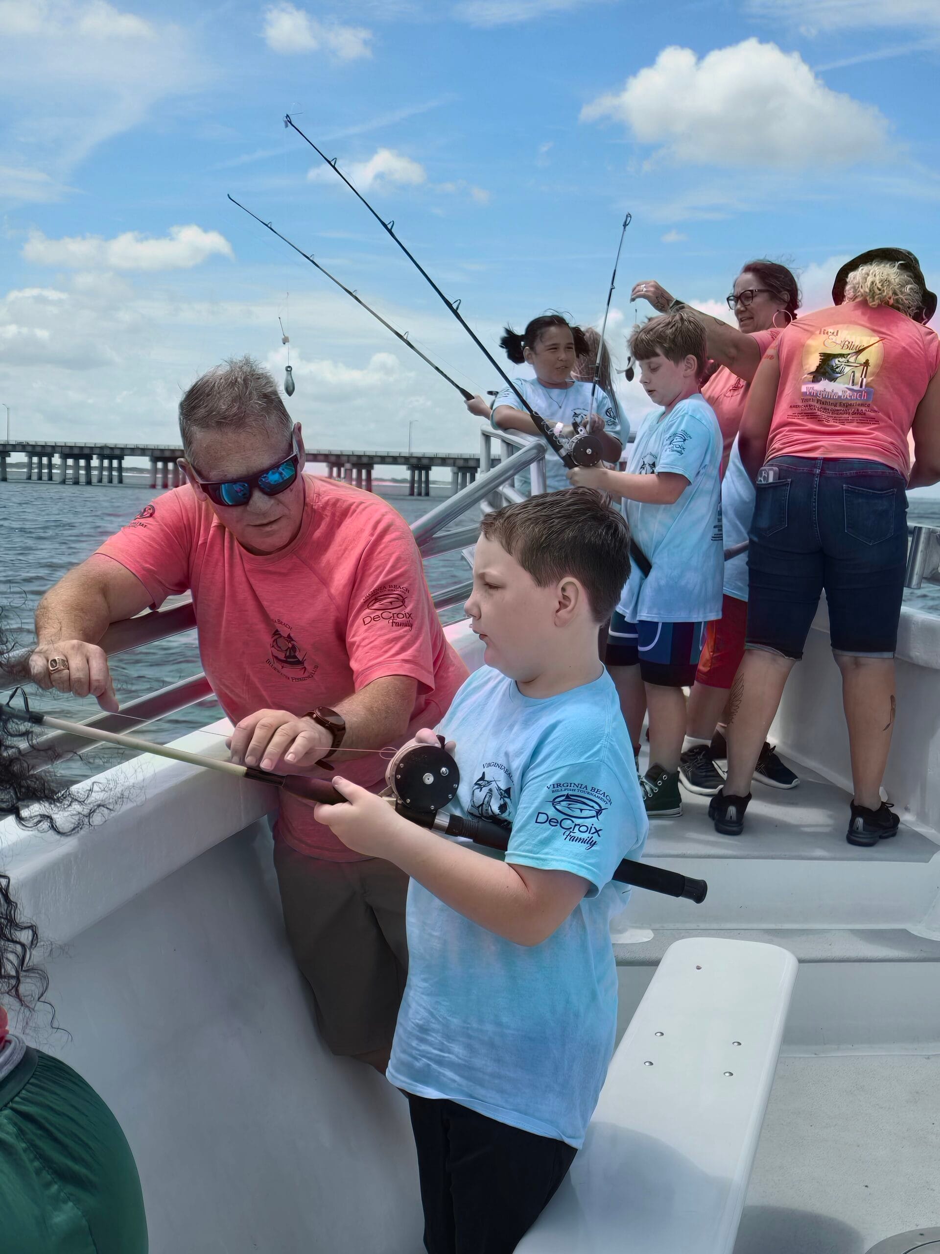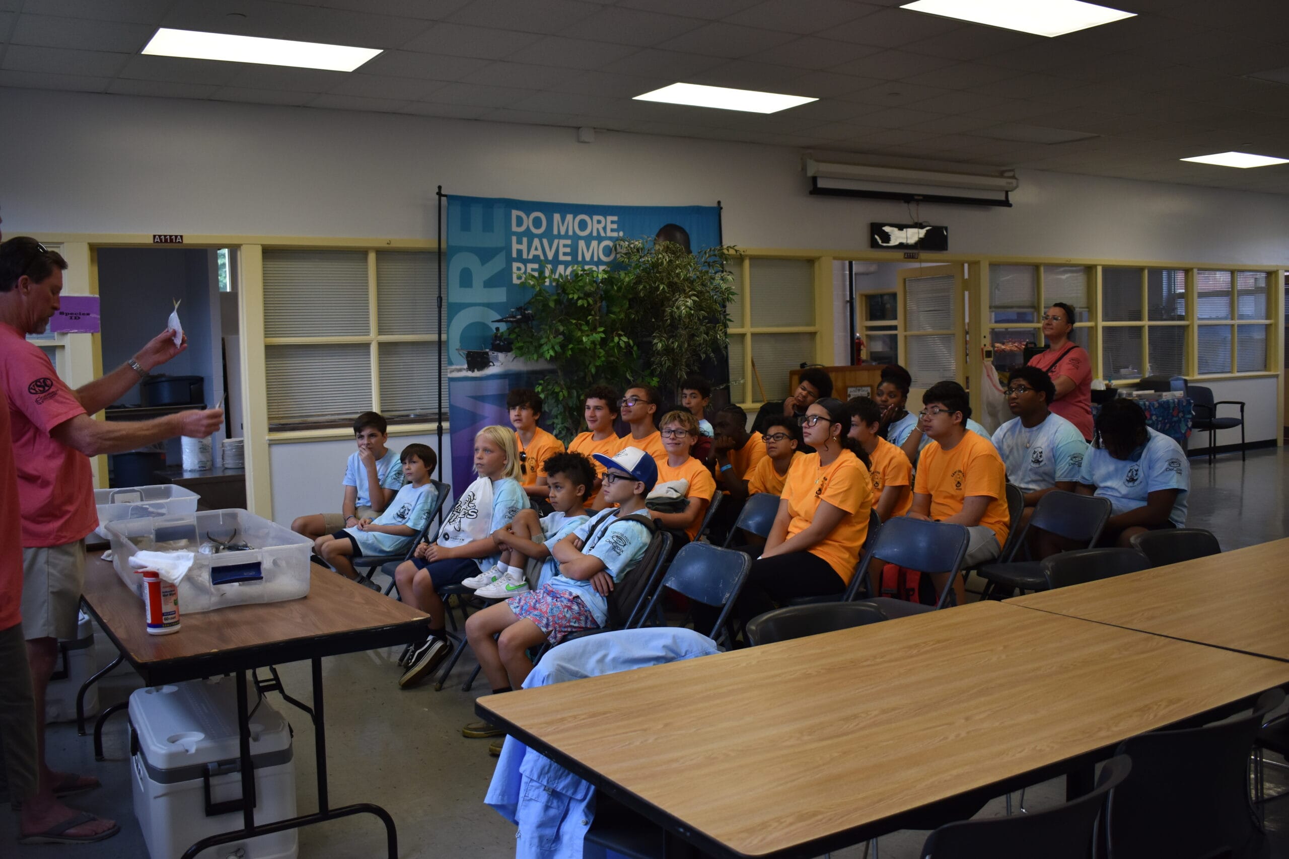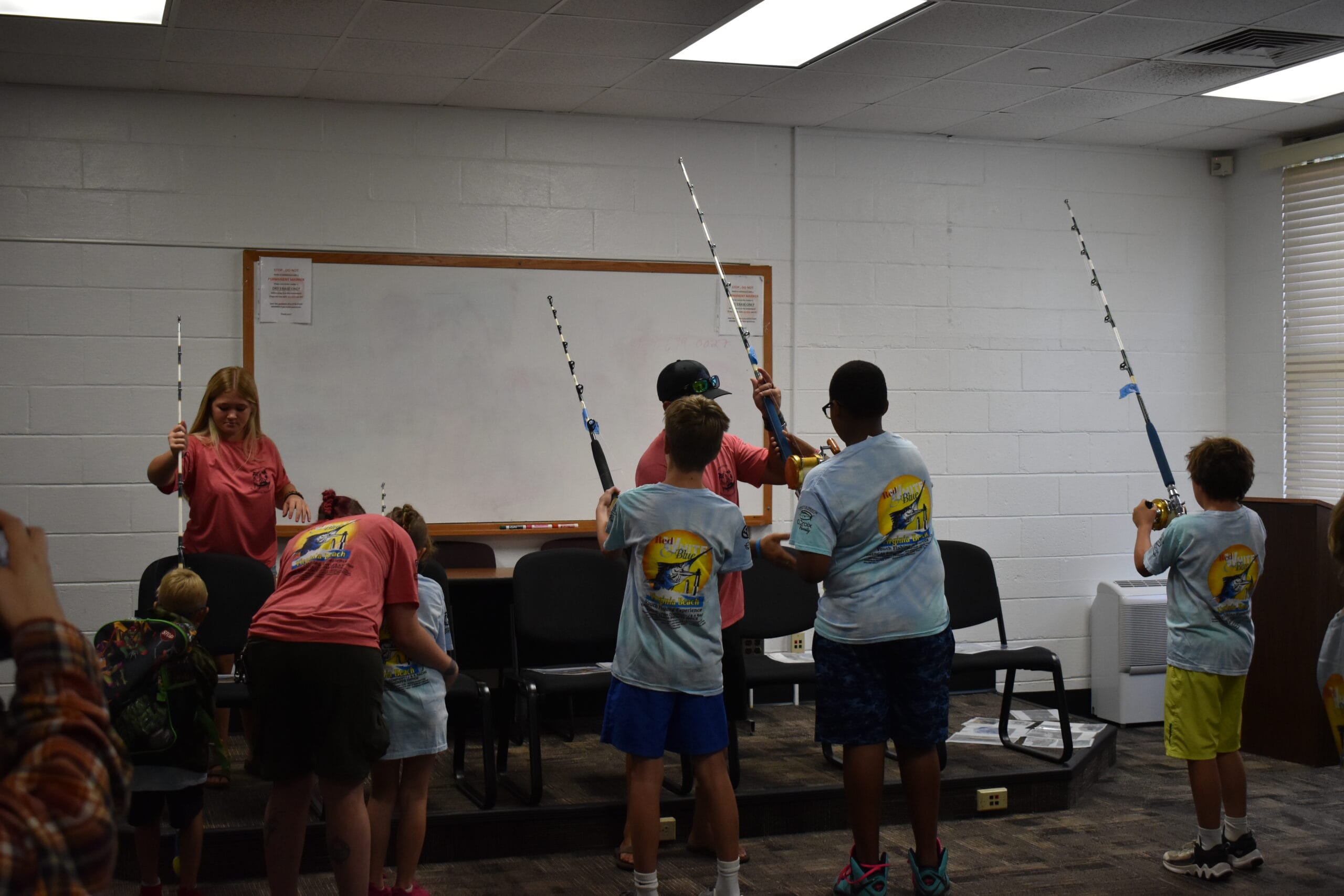 On the day of the events, the numerous volunteers are excited to welcome the kids with wrist bands and custom event shirts as their parents drop them off for the full day. Their morning consists of FUN educational presentations and multiple hands-on workshops focusing on safety, marine preservation, identification, basic fishing skills, knot-tying, etc. After enjoying their lunch, the children and volunteers are transported to 1 of the 3 Head Boats where the captain and mates are eagerly awaiting to depart to their fishing spots! The kids spend the rest of the afternoon fishing (and smiling) before returning to LETA for a meal of burgers and hot dogs. It all ends with an awards ceremony for various categories before departure.