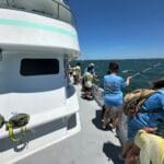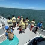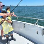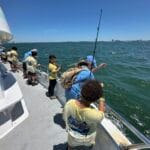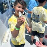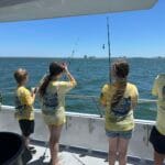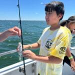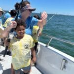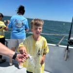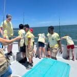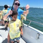 On the day of the events, the numerous volunteers are excited to welcome the kids with wrist bands and custom event shirts as their parents drop them off for the full day. Their morning consists of FUN educational presentations and multiple hands-on workshops focusing on safety, marine preservation, identification, basic fishing skills, knot-tying, etc. After enjoying their lunch, the children and volunteers are transported to 1 of the 3 Head Boats where the captain and mates are eagerly awaiting to depart to their fishing spots! The kids spend the rest of the afternoon fishing (and smiling) before returning to LETA for a meal of burgers and hot dogs. It all ends with an awards ceremony for various categories before departure.