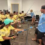Mac, the VP of the Virginia Beach Bluewater Fishing Club (VBBFC), starts planning for the NEXT year’s VBBF HOF-NOD Summer Youth Events in June. There is a lot that goes into coordinating 2 fishing events that benefit 300+ local youth each year! This includes securing the LETA location, boats, transportation, lunch/dinner/snacks/beverages, recruiting volunteers, shirts, trophies, collaboration with school guidance counselors…etc! Meanwhile, Judy and Frank work diligently with their contacts to solicit the tremendous amount of donations required to fund these 2 events. Behind the scenes, the VBBFC board members also do their best to support the VBBFC and VBBF HOF-NOD through member events and planning of the Annual Oyster Roast for additional funds to support the youth events. It is all a team effort with volunteers trying to make it a fun and rewarding experience for all.